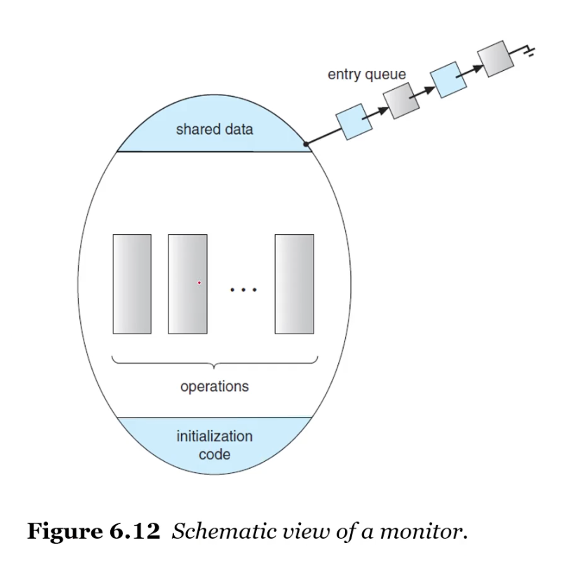위와 같은 타이밍 에러 상황은 결국 사람에 의해서 발생할 수 있는 것이므로, 가장 좋은 것은 애초에 그런 일이 벌어지지 않도록 도구 자체를 개선하는 방법이 있음. 그 도구가 바로 모니터(Monitor). 모니터는 abstact data type인데, 상호배제를 프로그래머가 구현해서 사용해야 하는 타입. 모니터를 선언하고 그 안에 있는 함수들은 mutual exclusive 한 것이라고 생각하고 구현하게 하는 것.