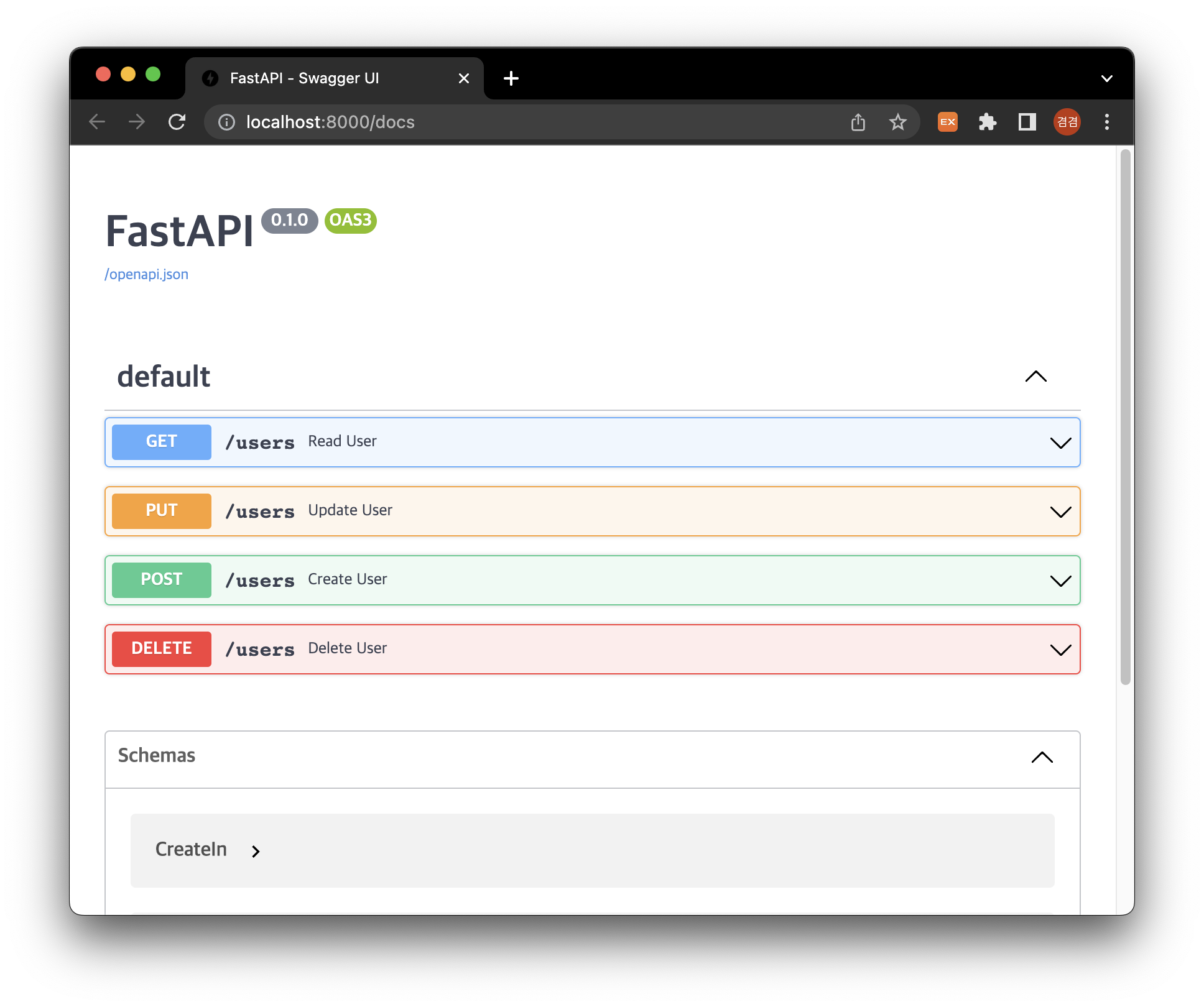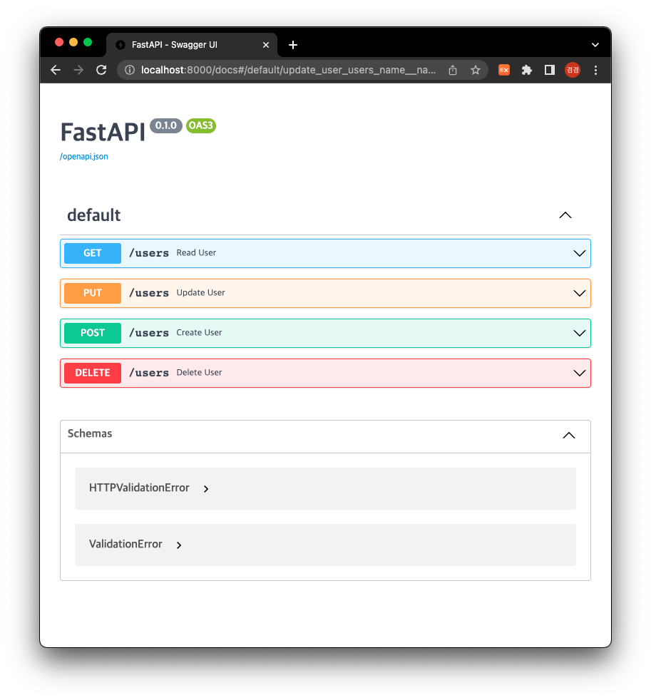 - D: 이름을 받아 해당 이름을 지닌 사용자 정보 삭제 (이름 없으면 HTTPException)