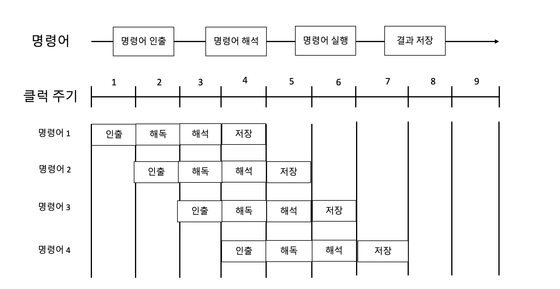명령의 단계가 겹치지만 않으면 CPU는 명령어를 동시에 실행할 수 있음