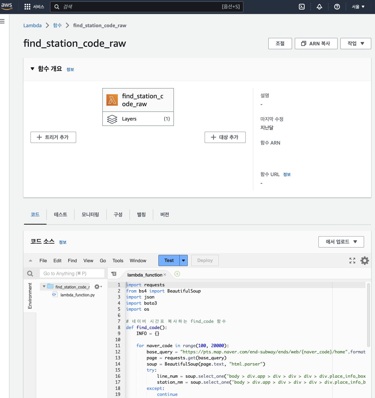 #bs4와 같은 코드는 zip 파일로 저장해서 layer에 넣었음