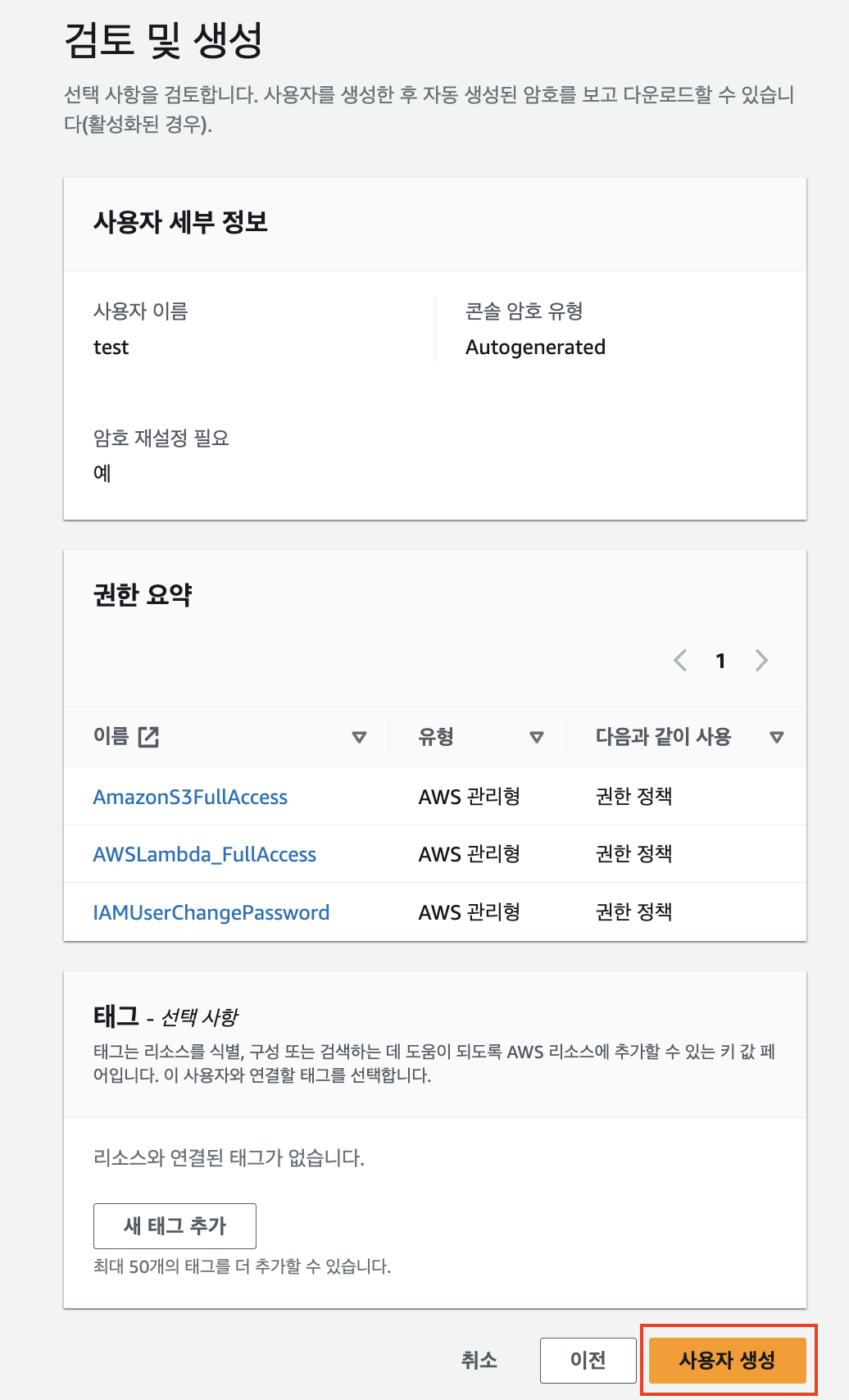 이 스텝이 진짜 복병이었다. 그냥 lambda에 코드 올리고 S3 연결해주면 되는거 아닌가 룰루~ 하면서 쉽게 생각했는데, 막상 그걸 하기 위해 설정해줘야 하는 것들이 있었다 하하... 이 글을 쓰고 있는 지금 시점에 와서야 이런게 있었지 허허허 하고 있지만 이거 처음 마주쳤을 때는 상당히 당황스러웠다. (사실 SDK라는 것을 본격적으로 사용해본게 처음이라서 그랬을 수도)