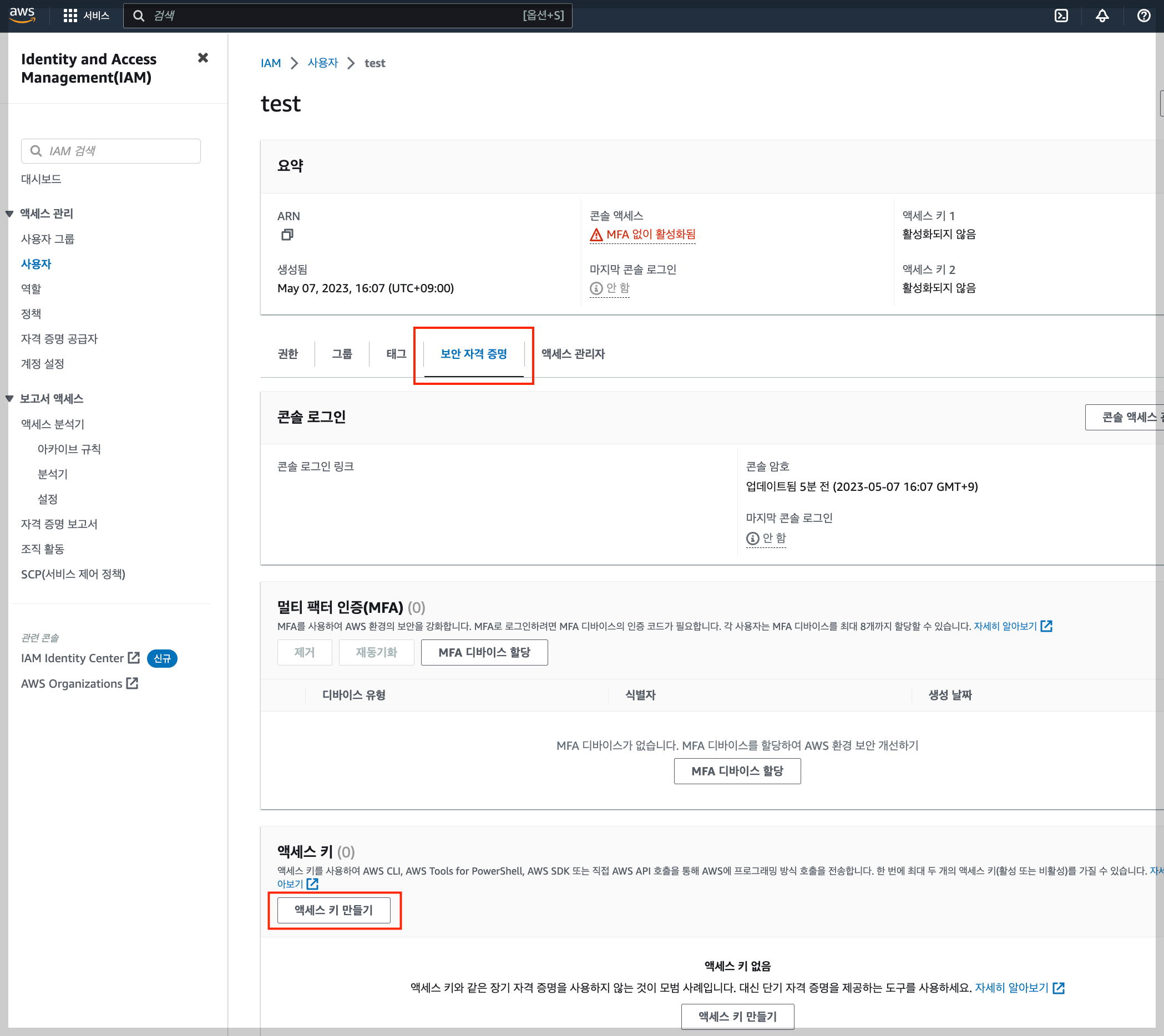 이제 access key와 secret access key를 발급받았으니 복수해줄 차례다