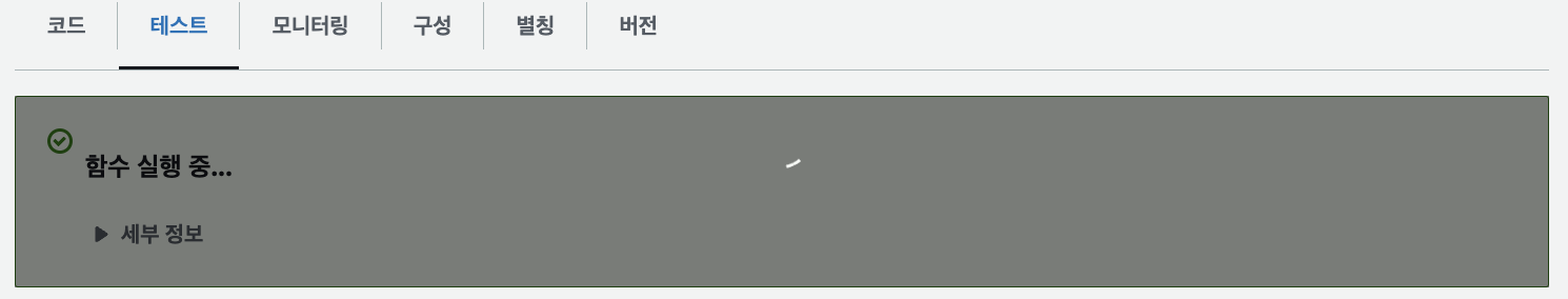 테스트 이벤트를 조금 더 세밀하게 구성해야 하거나, 도커 이미지 등으로 코드를 작성하여 올리는 경우 아래 '테스트'를 눌러서 진행해야 한다.
