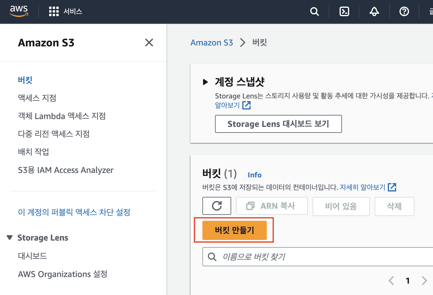 S3 서비스로 들어가서 버킷 만들기를 클릭하자