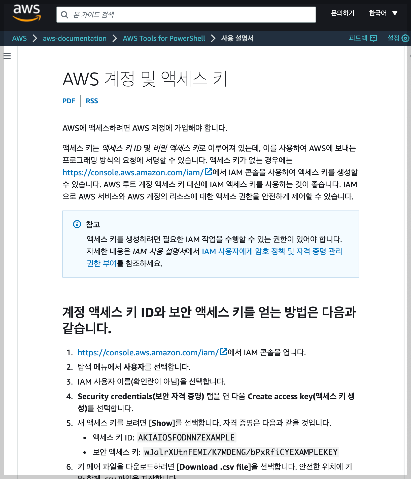 aws_access_key_id와 aws_secret_access_key가 무엇인고... 찾아보니 우리의 AWS는 친절히도 공식문서를 적어두셨다 (link)