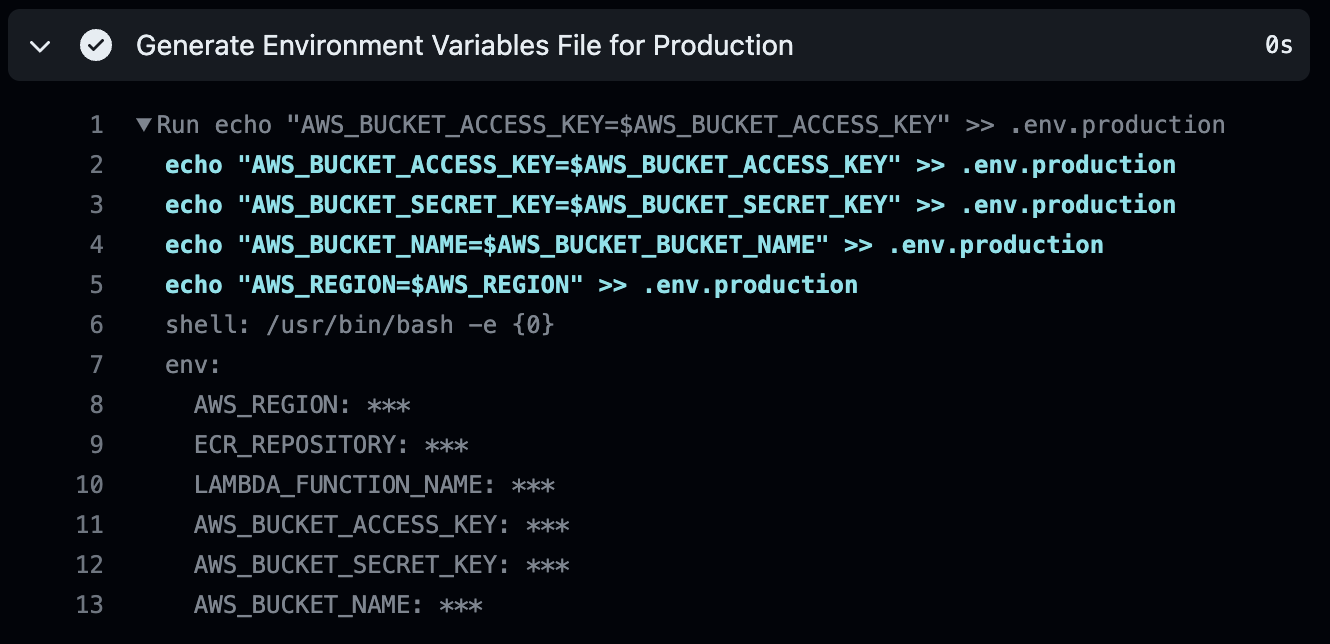 - name: Generate Environment Variables File for Production
