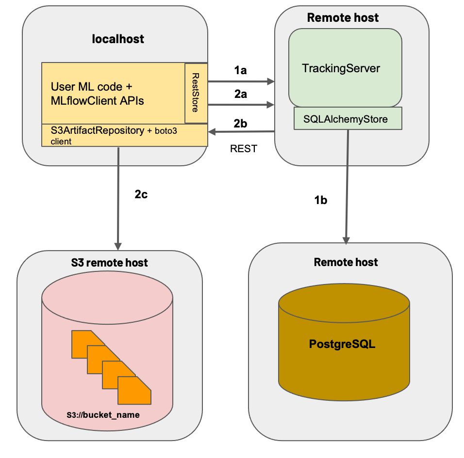 원격 저장소에 저장 -> MLflow의 tracking URI로 기록물을 가져와서 사용하는 방식