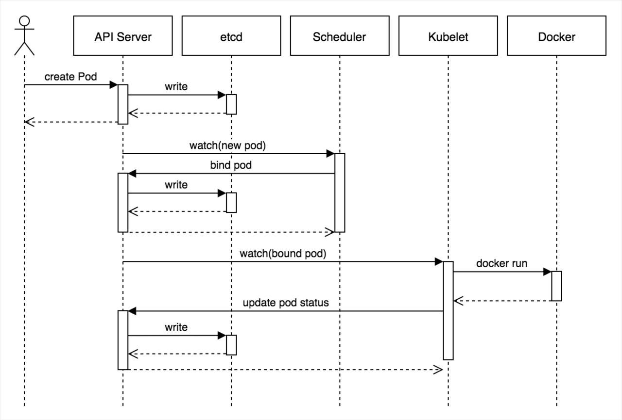 1. 사용자가 kubectl 명령으로 API Server에 파드 생성 요청