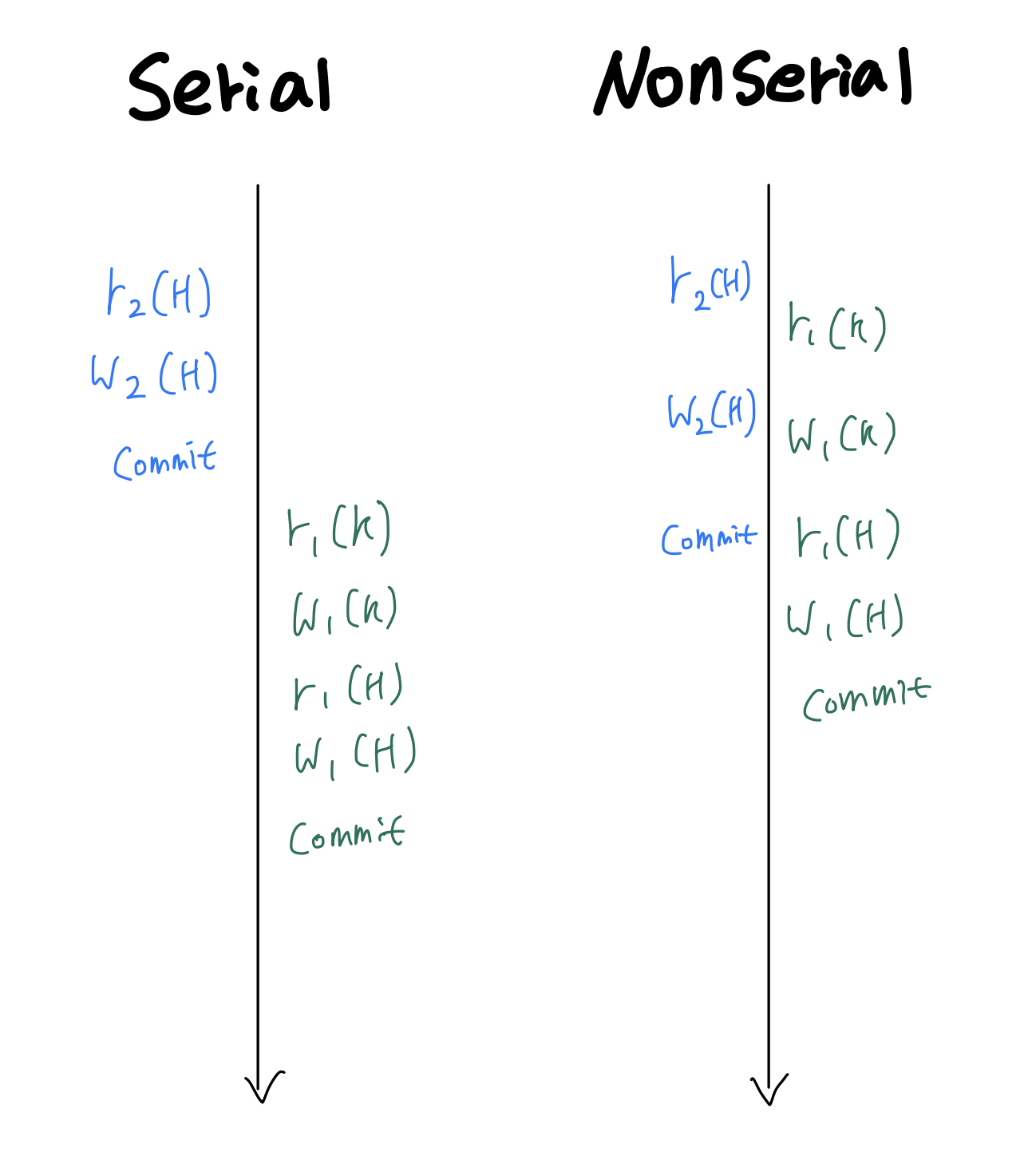 - Nonserial Schedule: 트랜잭션들이 겹쳐서 실행되는 스케쥴