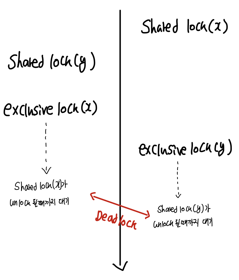 하지만 2pl protocol이 완전무결하지는 않은데, 경우에 따라 트랜잭션끼리의 데드락이 발생할 수도 있다