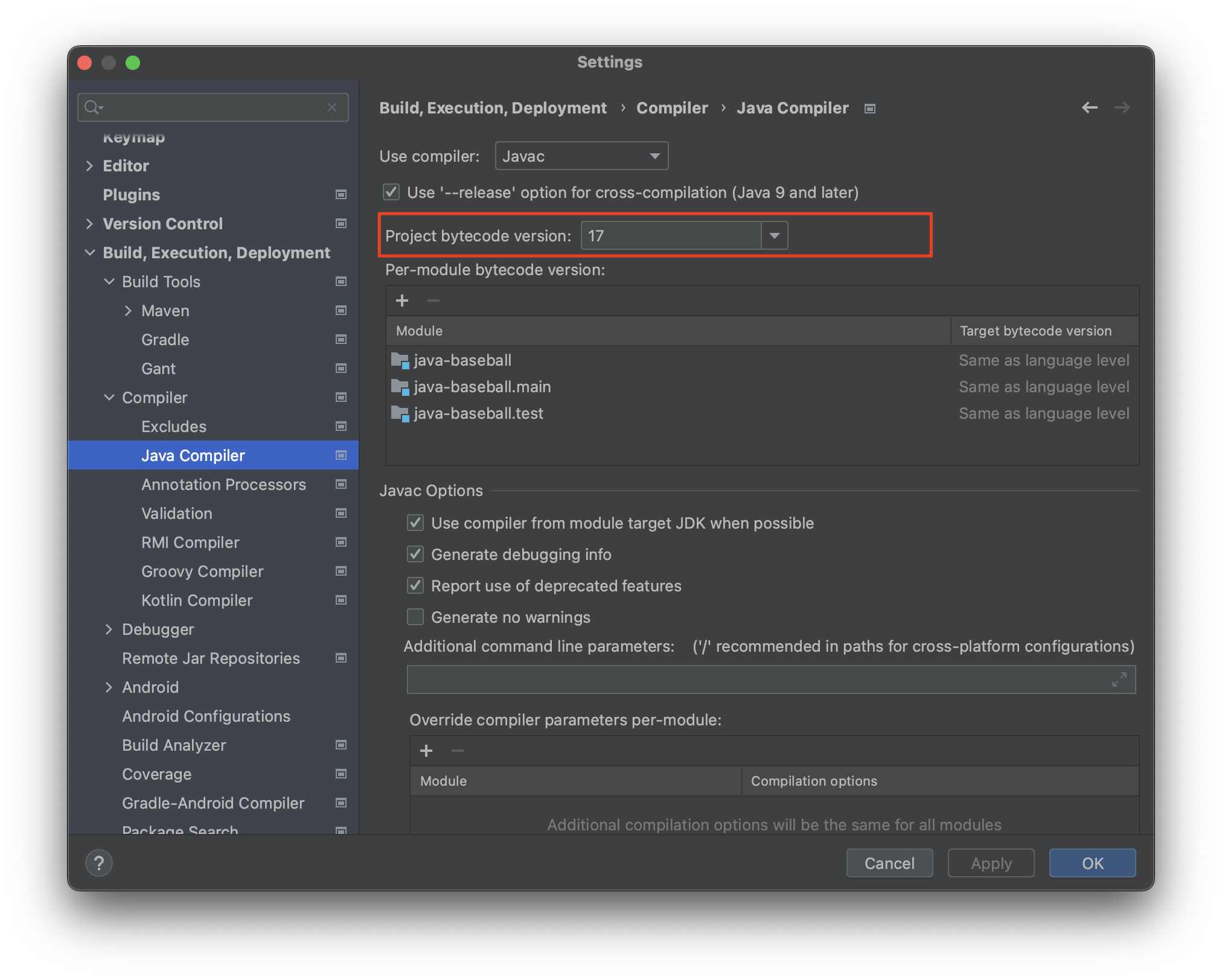 Intellij IDE -> Setting -> Complier -> Java Compiler
