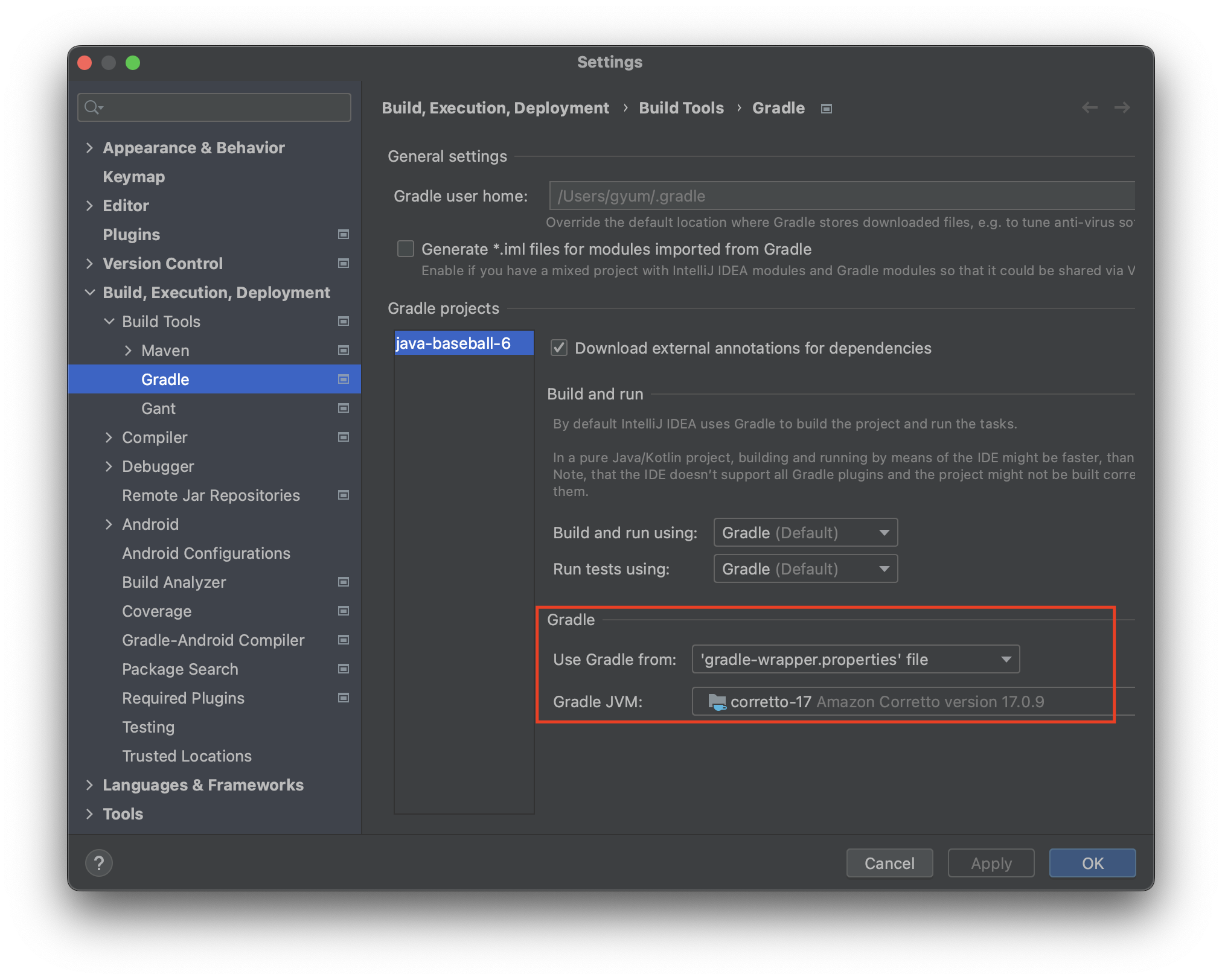 빌드 JVM 버전 변경. 이번에 Gradle을 쓰기 때문에 Gradle에서 변경함